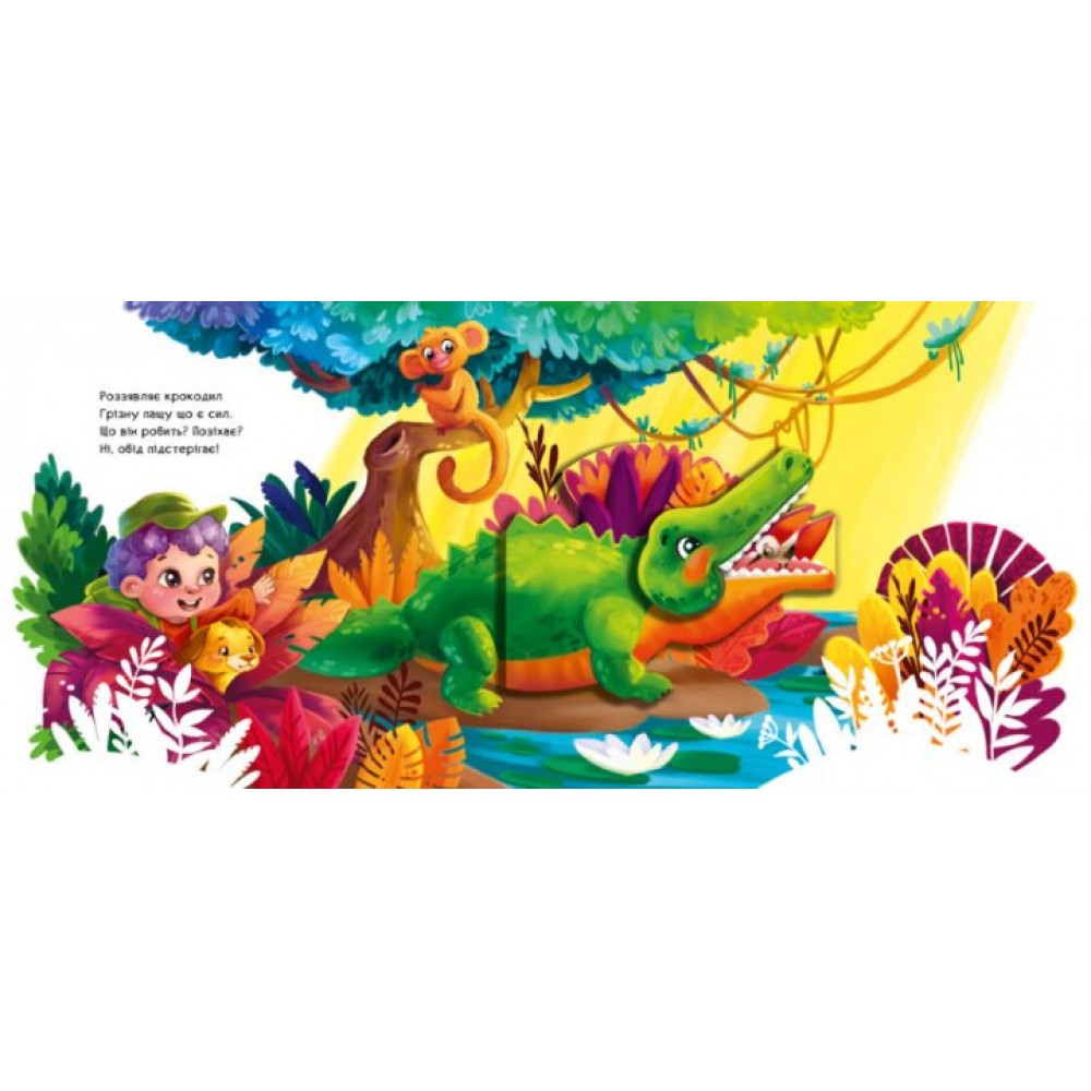 Ця яскрава книжка великого формату — чудовий подарунок малюкові. Адже в ній є 5 незвичайних 3D картинок. Тварини на них оживають! Лінивець гойдається на гілці, бегемот розкриває свою пащу, а гордий гриф шугає в небі, махаючи крилами. Пограйся з ними! Тобі сподобається!