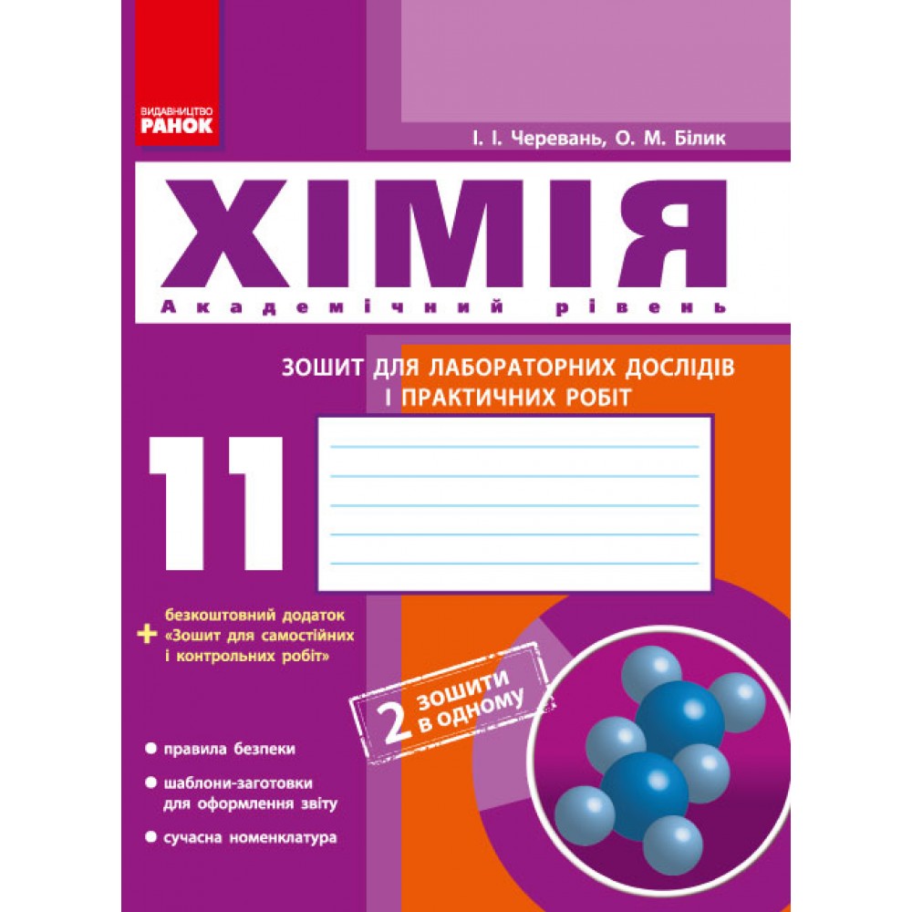 Хімія, зошит 11 клас для лабораторних дослідів та практичних робіт Академічний рівень - Черевань