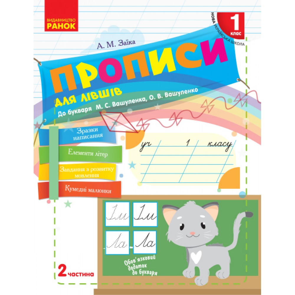 НУШ 1 клас Прописи для лівші до букваря Вашуленка, Вашуленко 2 частина (у 2-х ч.) - Заїка