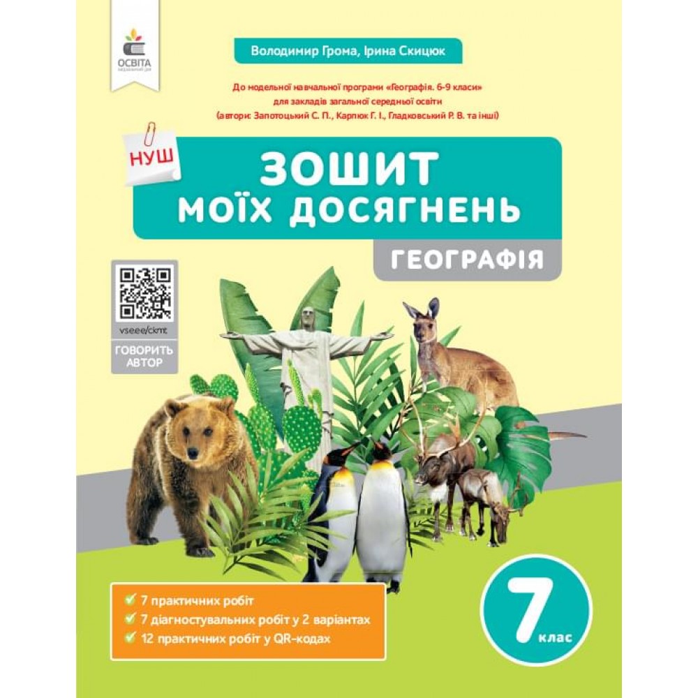 Географія Зошит моїх досягнень 7 клас - Грома, Скицюк (9789669835222)У зошиті запропоновано роботи у 2 варіантах за кожною програмовою темою.