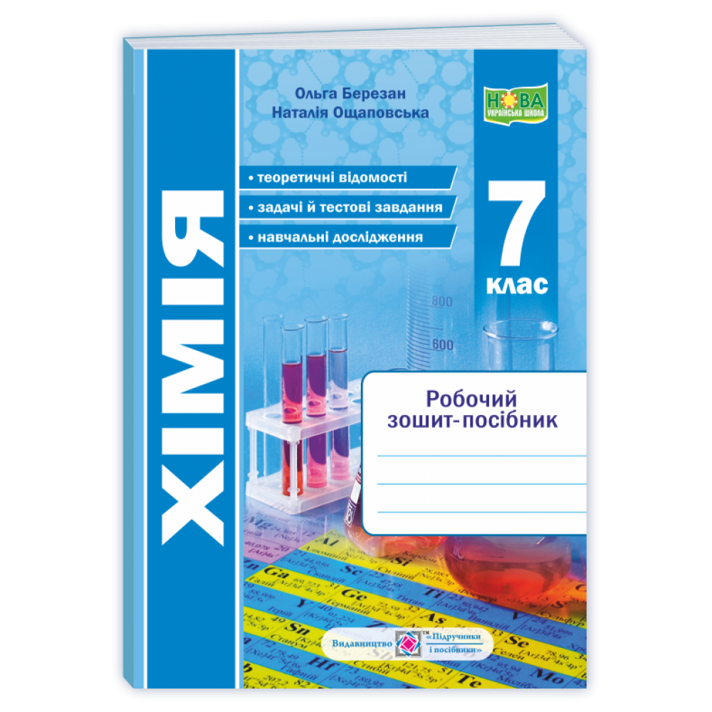 Робочий зошит-посібник призначений для роботи на уроці та вдома й укладений відповідно до змісту чинної програми. Це дає можливість використовувати його незалежно від того, яким підручником послуговуються в навчальному закладі. Зошит містить приклади розв’язання типових задач, тематичні тестові завдання, орієнтовні зразки контрольних робіт, а також окремий зошит-вкладку для лабораторних і практичних робіт. Для учнів 7 класу і вчителів хімії.